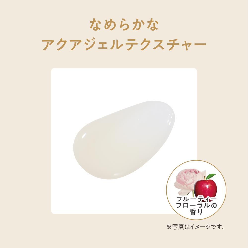 なめらかなアクアジェルテクスチャーが肌を包み込み、長時間うるおいのある肌に整えます。