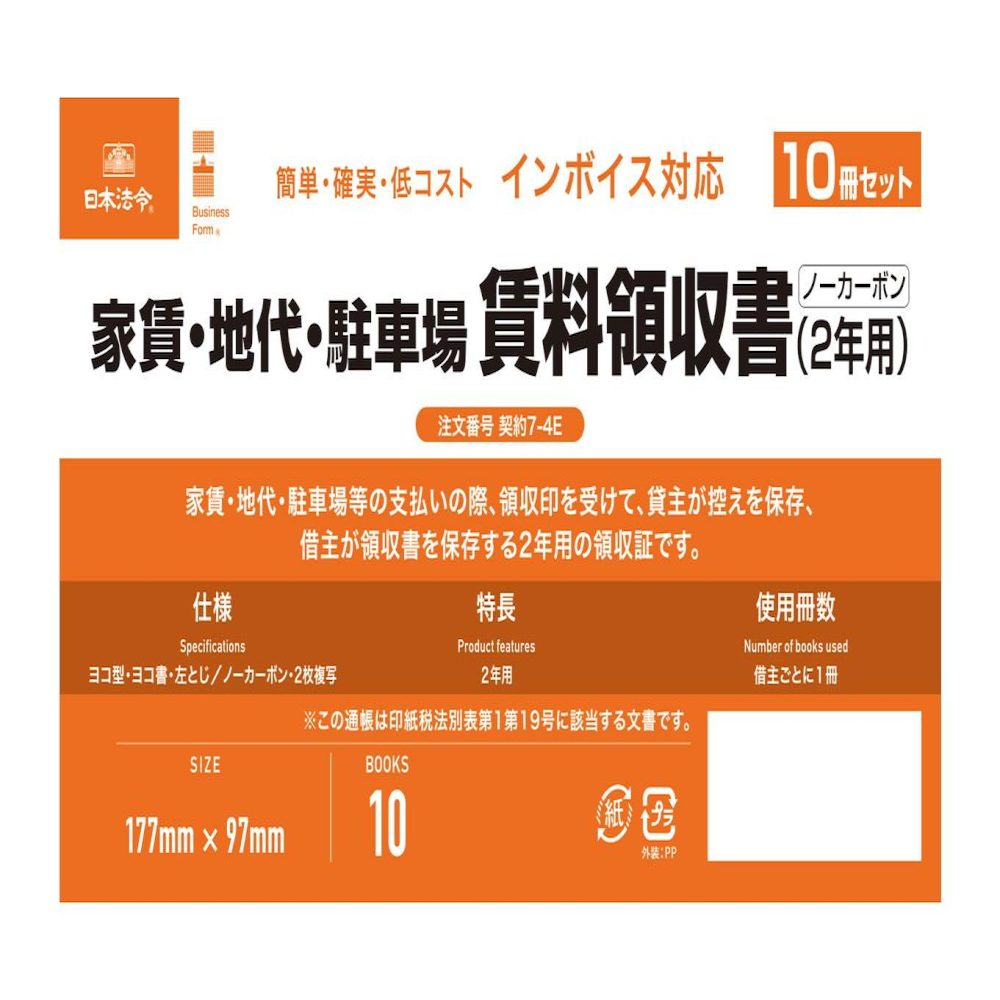 契約7-4E/インボイス対応 家賃・地代・駐車場 賃料領収書(2年用)(10冊セット)