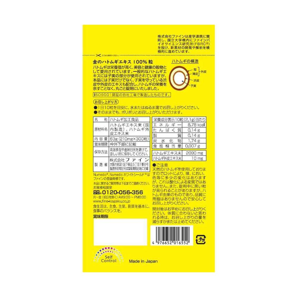 ハトムギエキス末:2090mg ハトムギ外皮エキス末:10mg