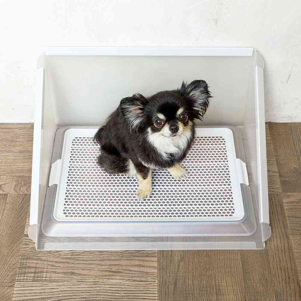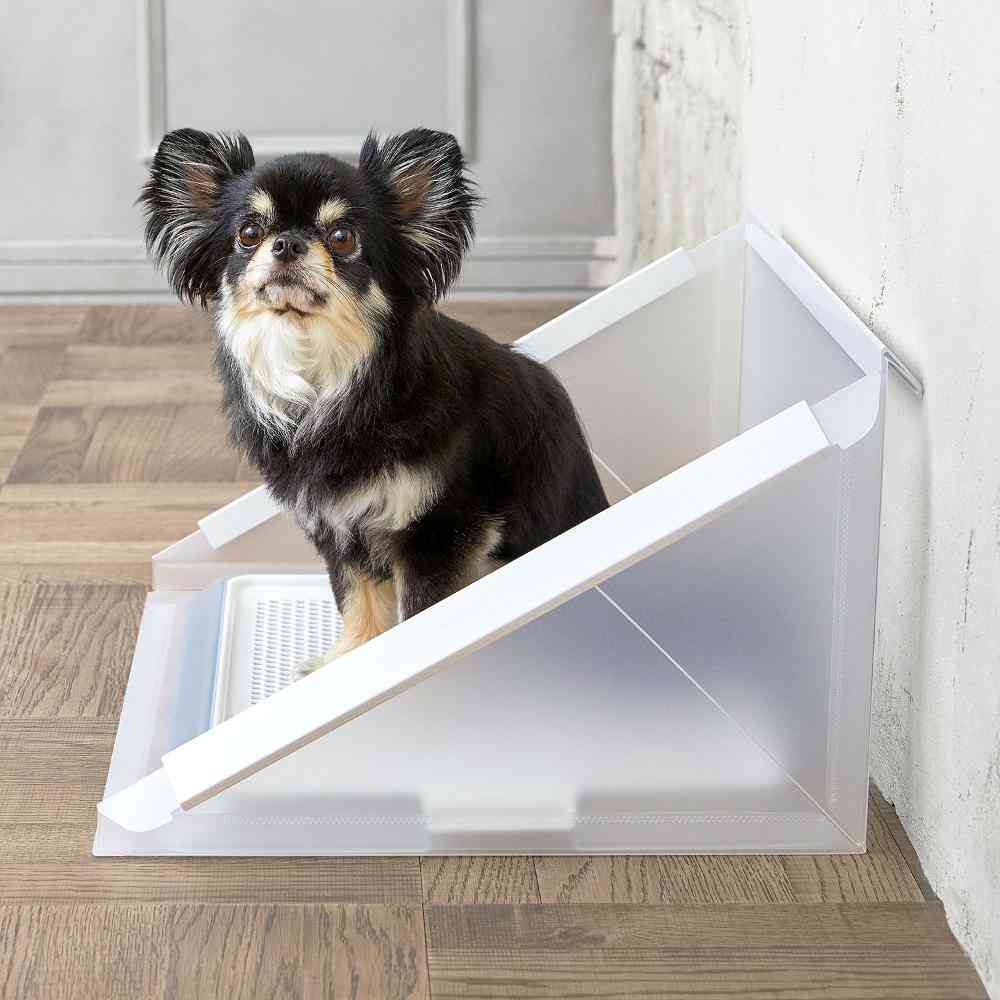 トイレ周りの飛散汚れをガード。高い壁ではみ出し防止&目隠し。足をあげるワンちゃんにも最適。さっとたためてお手入れ簡単。