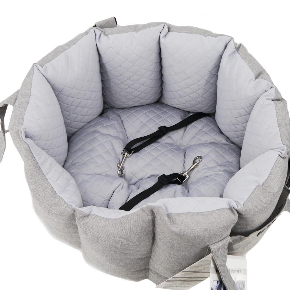 ・シートへの固定はヘッドレストとシートベルトの2点で行うので安全。車の助手席に乗せた際にペットの顔が見えるようになっています。