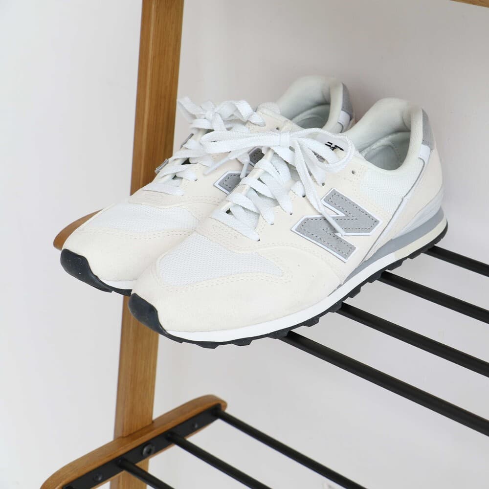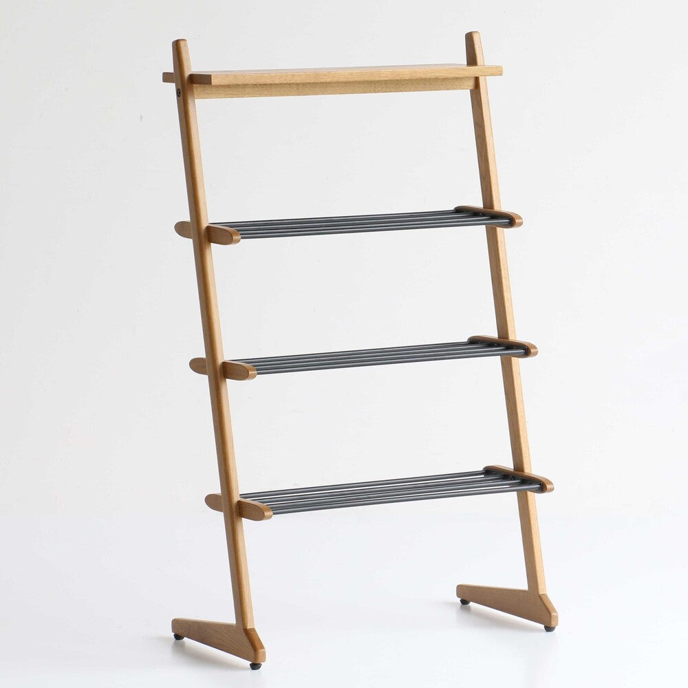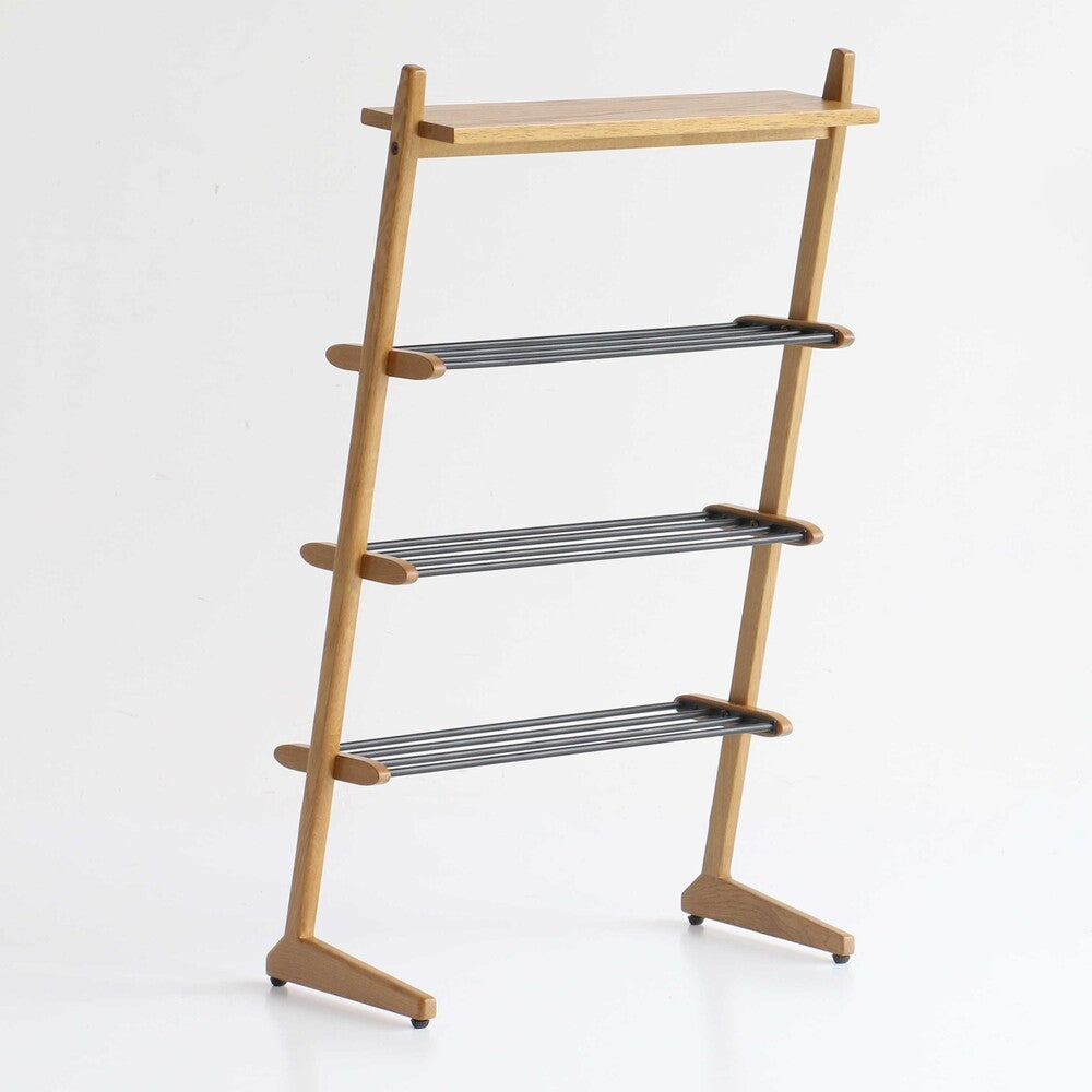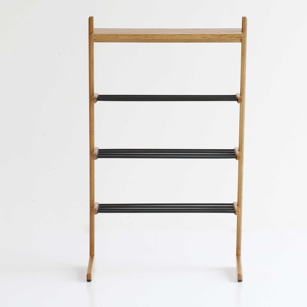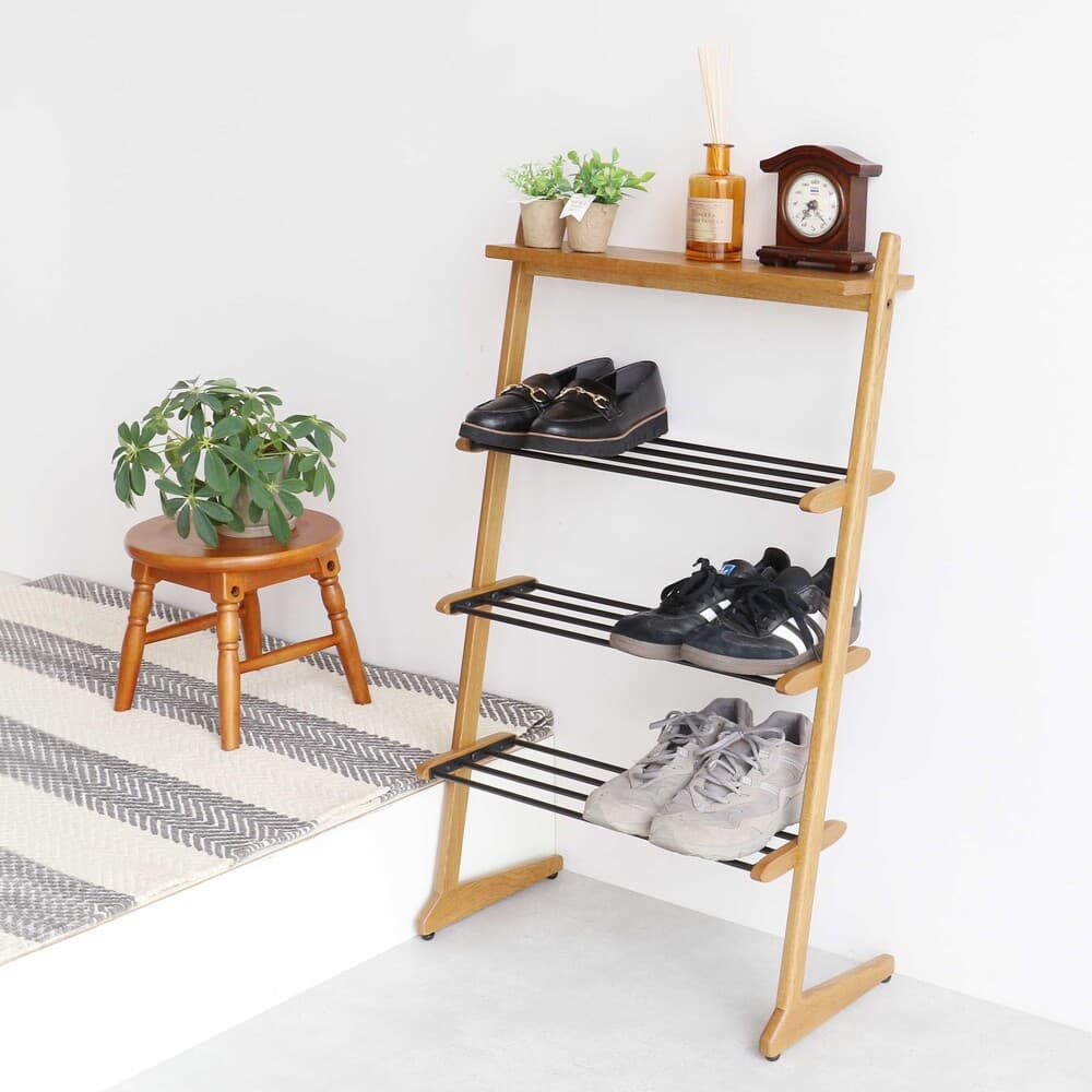 最大で8足の靴を収納できるシューズラックは、機能性とデザイン性を兼ね備えたアイテムです。脚先にはアジャスターが付いており、床のわずかな傾きや段差にも対応できるため、常に安定した状態で設置することができます。