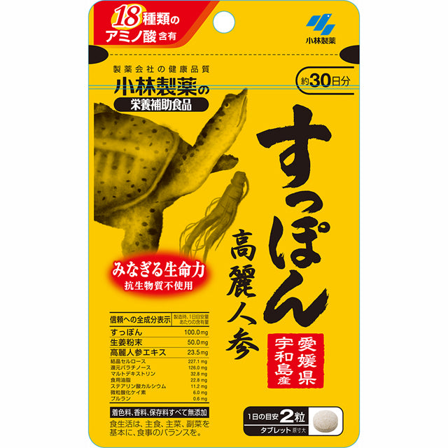 ●豊富にアミノ酸を含み、疲労回復・男性機能改善効果のある「すっぽん」、高麗人蔘に、血行促進効果のあるしょうが粉末を配合した滋養強壮サプリメントです