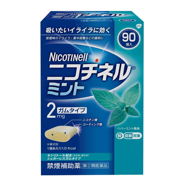 ●糖衣タイプでミント風味のニコチンガム製剤。